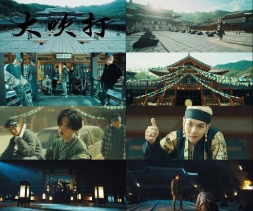 '대취타'의 뮤직비디오 역시 웅장한 아름다움과 심오한 분위기가 돋보인다. 궁궐을 배경으로, 다른 모습의 두 인물을 표현하는 슈가의 열연이 빛난다. 또 한복을 입고 검무를 추는 장면이 역동적이다.