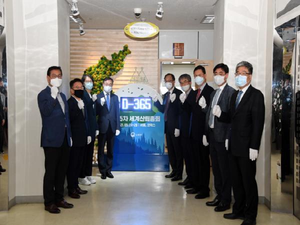 산림청(청장 박종호)은 5월 25일 제15차 세계산림총회 개최 예정 1년 전인 D-365일을 기념하여 산림청장 등 관계관이 참석한 가운데 산림청장실 앞에서 전광판 제막식을 했다.