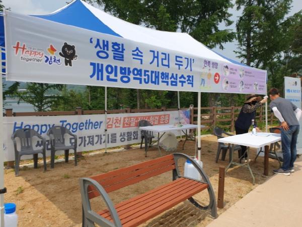 시는 관광지 및 관광사업체 39개 업체에 대해서는 생활거리 수칙 협조 안내문과 함께 손소독제, 방역약품, 야영장 생활수칙 현수막 등을 배부하여 코로나 19예방 동참을 당부하였고,