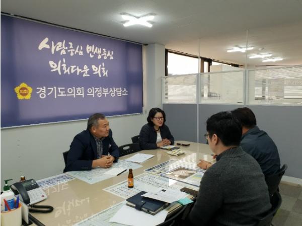경기도의회 제1교육위원회 최경자(더민주, 의정부1)도의원은 지난 5월22일 경기도의회 의정부상담소에서 경기도 건설국 하천 담당부서 관계 공무원과 민원 제기인이 참석한 가운데 양주시 장흥면 일대 폐.하천부지 관리계획 변경(보전->처분) 요구 사안에 대해 논의하는 시간을 가졌다.