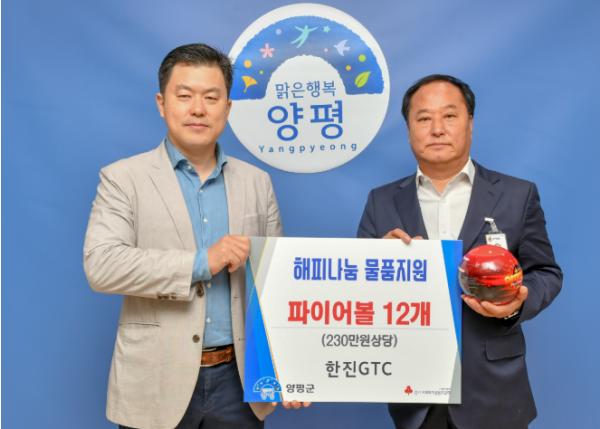 한진GTC 신동진 대표는 5월초 양평군 용문면에서 발생한 화재사건을 보고 고향인 양평군에 화재예방용품인 파이어볼 기부를 결심하였다고 밝혔다. 파이어볼은 화재감지 시 자동으로 작동하여 화재를 초기에 진압할 수 있는 화재예방 및 화재진압 용품으로, 장애인 시설, 요양시설, 재래시장 등 피난 약자 시설에 효과적이다. 또한 스프링클러 시설이 없는 화재취약건물에 설치여 초기화재 예방 및 방재를 달성할 수 있다.