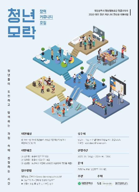 대전시는 내달 13일까지 청년커뮤니티 육성과 역량강화를 위한 ‘2020년 청년커뮤니티 활성화 지원사업’신청 팀을 모집한다고 밝혔다.