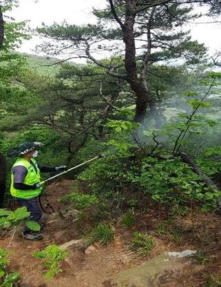 서승수 공원녹지과장은 “방제작업 구간을 지날 때에는 등산로를 우회하거나 작업이 끝날 때까지 잠시 기다리는 등 약해 피해가 발생하지 않도록 작업자의 안전 조치에 동참해줄 것”을 당부하면서, “선제적 방제를 통해 쾌적한 산림환경을 조성하겠다”고 전했다.