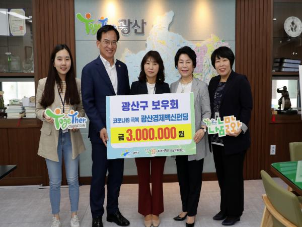 광산구 공무원 친목·자조모임 가운데 하나인 ‘보우회’ 회원들이, 광산구 민관산학 지역경제 활성화 거버넌스인 ‘광산경제백신회의’ 펀딩에 21일 300만원을 맡겼다.
