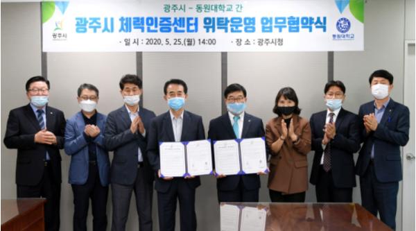 광주시 신동헌 시장과 동원대학교 이걸우 총장은 지난 25일 ‘광주시 체력인증센터 운영을 위한 위탁운영 협약’을 체결했다.