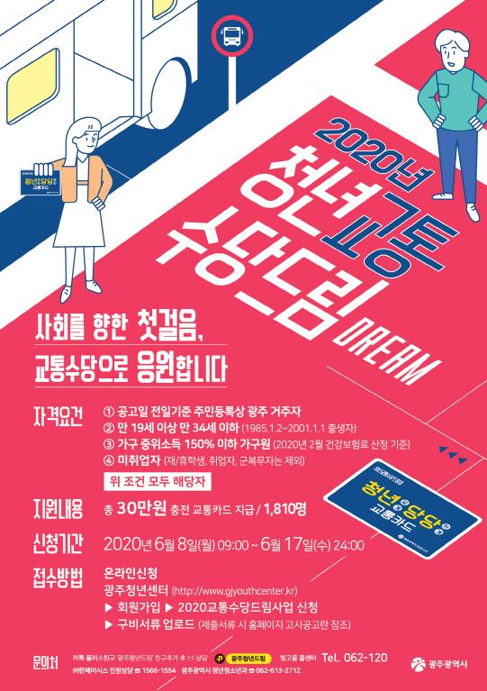 지난해까지는 대학(원)생 졸업반 청년에 한해 지원했지만, 올해는 만 19~34세 미취업청년으로 지원 범위를 확대하고, 전국 시내버스와 지하철에서만 사용 가능했던 교통카드를 고속버스와 KTX, 광주시내 택시에서도 사용할 수 있도록 했다.