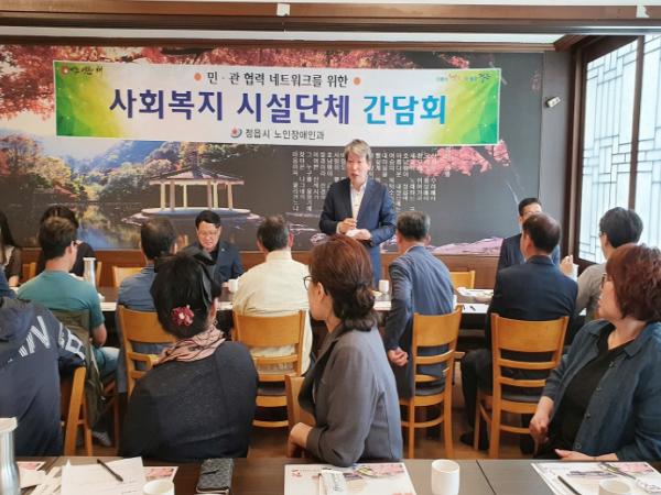 정읍시(유진섭 시장)가 시민이 체감하는 맞춤형 복지정책 추진을 위해 노인·장애인 시설단체와 간담회를 열고 현장의 목소리에 귀를 기울였다.