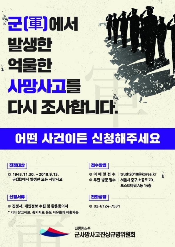 군 관계자는 “군대에서 자식을 잃고 평생 한 맺힌 슬픔을 안고 살아가는 유가족들이 위원회의 공정한 조사로 진실이 명확히 규명돼 명예회복 및 합당한 예우를 받을 수 있도록 위원회와 다방면으로 협력해 나가겠다”고 말했다.
