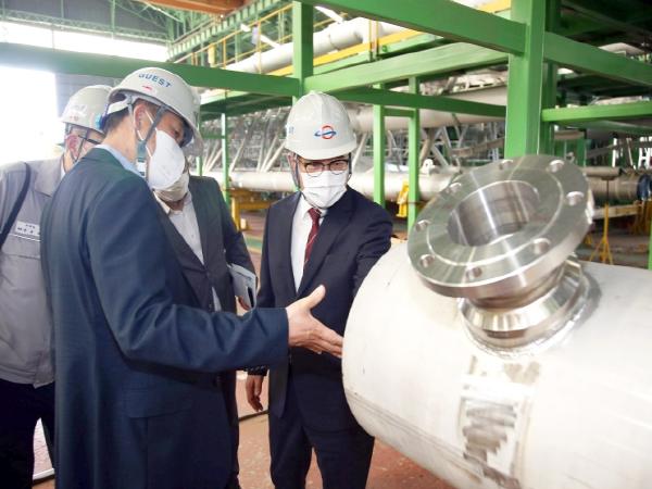 허성무 창원시장은 26일 성산구 신촌동 액화천연가스(LNG) 펌프 타워 전문기업 HSG중공업(주)를 방문해 애로사항을 청취하는 등 기업 소통행보를 이어갔다.