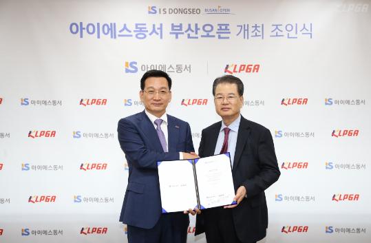 5월 26일(화), 한국여자프로골프협회(KLPGA)가 서울시 강남구에 위치한 KLPGA 사무국에서 아이에스동서㈜와 함께 ‘아이에스동서 부산오픈’의 개최 조인식을 가졌다.