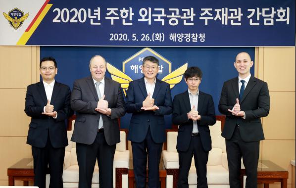 한편, 이날 간담회에 참석한 4개국 영사와 해양경찰청 직원이 함께 코로나19 극복을 위해 고군분투하고 있는 전 세계 의료진의 노고에 감사하며 “덕분에”응원(캠페인)에 동참했다.