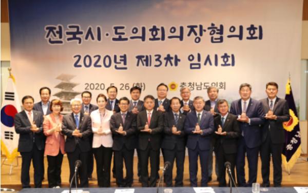 충북도의회 장선배 의장을 비롯한 전국시·도의회의장단은 26일 부여에서 제3차 임시회를 열고 2개 이상의 지방자치단체에 분산된 고액·상습 지방세 체납자의 징수강화를 위한 지방세법 개정 촉구 건의안을 채택했다.