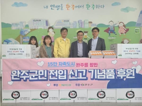 문명기 교육아동복지과장은 “15만 자족도시를 향해 가고 있는 완주군에 전입해주신 모든 분들을 진심으로 환영한다”며 “기념품 제공에 협조해주신 NH농협에 깊은 감사를 드리고, 앞으로도 완주군의 인구증가를 위해 다양한 방안을 강구하겠다”고 말했다.