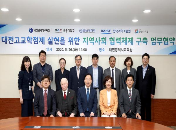 대전광역시교육청(교육감 설동호)은 5월 26일(화) 대전 관내 4개 대학(우송대, 충남대, 한국과학기술원, 한밭대)과 고교학점제 전면 시행 대비 지역사회 협력체제 구축을 위한 업무협약을 체결했다고 밝혔다.