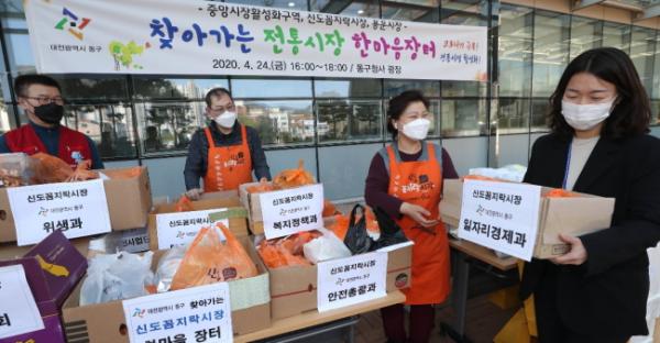 대전 동구(구청장 황인호)가 전국 최초로 온라인 ‘찾아가는 전통시장 한마음장터’를 본격 운영한다고 27일 밝혔다.