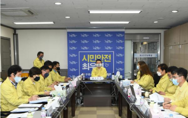 구리시재난안전대책본부(이하 재대본, 본부장 안승남 구리시장)는 27일 시청 재난종합상황실에서 어린이집을 다니는 아이를 제외한 기족과 동거인 총 7명 코로나19 확진자 발생에 따른 비상대책회의를 주재하고, 시민들의 불안감 해소와 지역사회 확산차단에 총력을 기울이기로 했다.