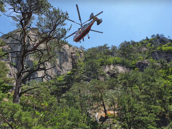 산림청 산림항공본부(본부장 진선필)는 5월 27일 강원도 동해시 무릉계곡 매표소에서 베틀바위로 이어지는 등산로 정비사업에 산림헬기를 지원했다.