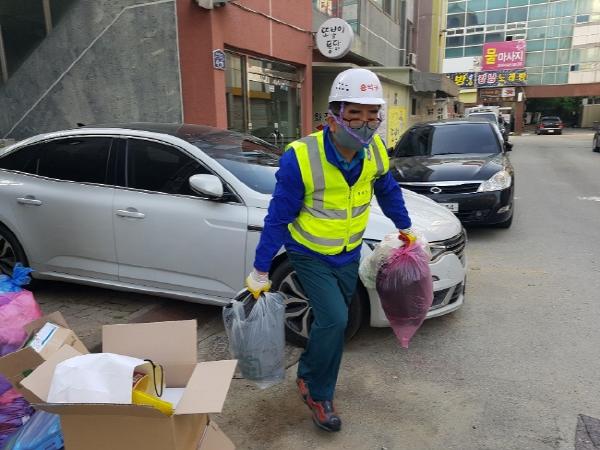 충북도의회 정책복지위원회 소속 최경천 의원(더불어민주당, 비례)이 27일 ‘일일 환경관리원’이 되어 청주시 쓰레기 수거 작업에 참여했다.