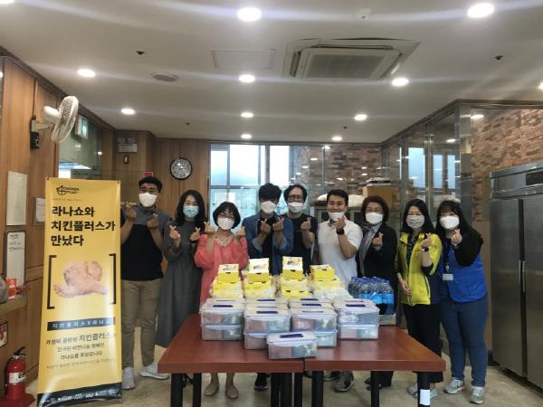 민간 후원단체인 라나쇼와 ㈜돕는사람들이 인천 미추홀구(구청장 김정식) 숭의종합사회복지관에 최근 치킨 40마리를 전달했다.