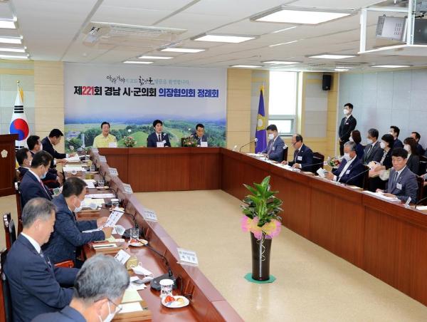 경남시.군의회의장협의회는 경남지역 18개 시·군의회 정보교류와 지방의정 발전을 위해 매월 회의를 개최하고 있으며, 그동안 코로나19 확산방지를 위해 서면회의로 대체하였고, 생활방역으로 전환 후 올해 처음으로 개최하게 되었다.