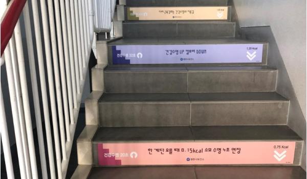 각 아파트 계단에는 이용 시 장점 및 소비 칼로리, 기대효과 등 건강문구를 부착해 주민들의 건강생활실천을 도모할 수 있도록 독려하고 있다.