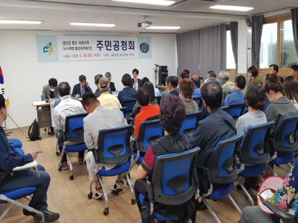 금산군은 지난 26일 금산읍 금빛시장 상인회 사무실에서 지역주민과 도시재생 전문가 등 50여명이 참석한 가운데 중도?하옥지역 도시재생 활성화계획 주민공청회를 개최했다.
