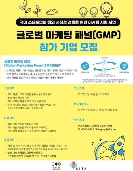 ‘기분 좋은 변화, 품격 있는 강남’으로 실현 중인 강남구(구청장 정순균)가 포스트코로나 시대를 맞아 스타트업 활성화를 위해 한국무역협회와 함께 해외소비자 수요조사(GMP)에 참여할 기업을 내달 14일까지 모집한다.