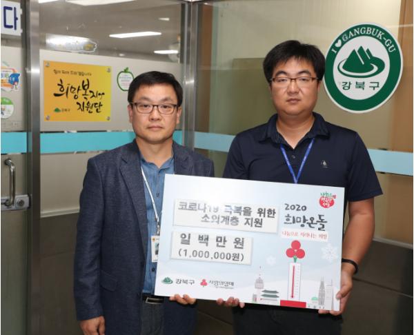 강북구(구청장 박겸수) 공무원들이 2020년 서울 창의상 수상상금 100만원을 사회복지공동모금회에 기탁했다.