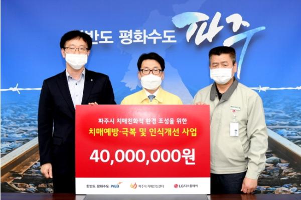 2018년부터 이어온 LG디스플레이의 지역사회 공헌활동의 일환으로 2020년에는 파주시치매안심센터와 함께 ▲치매환자 지원사업 ▲치매예방관리 및 치매시설 환경개선 ▲치매인식개선 및 치매 친화적 환경조성을 위한 활동을 할 예정이다.
