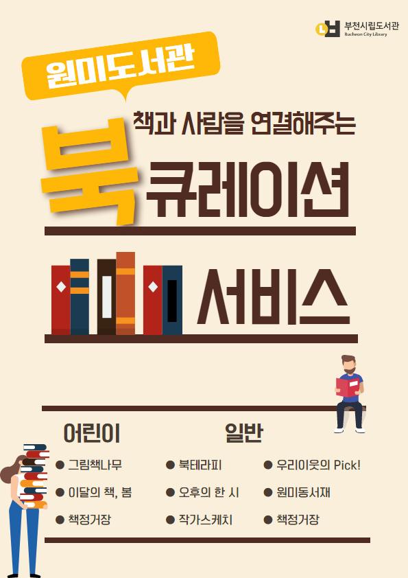 부천시 원미도서관은 새롭게 리모델링한 서가 전시 공간을 활용하여 시민의 독서 흥미를 유발하고 도서 선택에 도움을 줄 수 있는 북큐레이션 서비스를 시작한다.