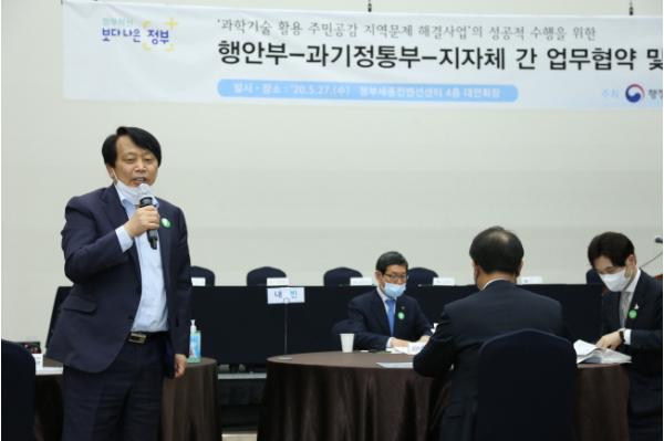 한편 27일 정부세종컨벤션센터에서는 과학기술 활용 지역문제 해결 공모사업 업무협약식이 개최됐다. 이성 구청장을 비롯해 윤종인 행정안전부 차관, 정병선 과학기술정보통신부 제1차관 등 관계자들이 참석한 가운데 업무협약서 서명, 착수보고회 등이 진행됐다.