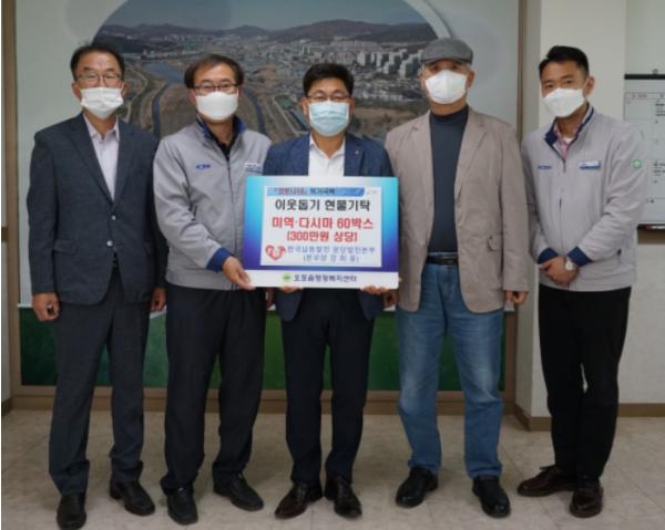 한국남동발전 분당발전본부 최상철 부장은 지난 26일 광주시 오포읍 행정복지센터를 방문해 미역·다시마 60박스(300만원 상당)를 기탁했다.