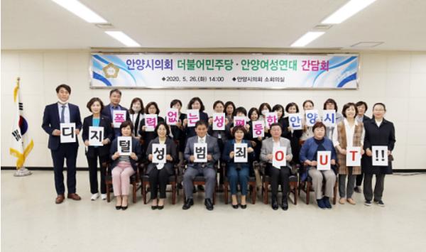 안양시의회 더불어민주당 교섭단체(대표 최우규 및 의원 13명)는 지난 26일 안양여성연대와 의회 소회의실에서 ‘디지털 성범죄 근절’을 위한 간담회를 개최, 대의기관으로서 안양시의회의 역할을 고민하는 시간을 가졌다.