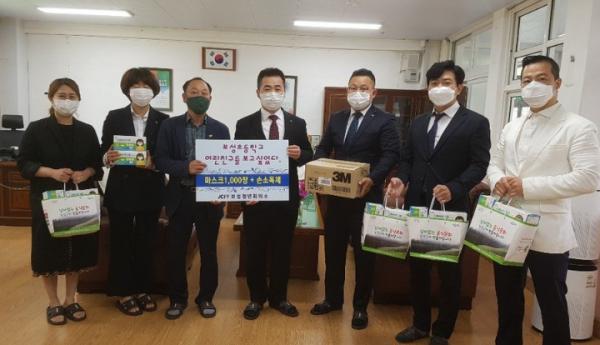 보성청년회의소(JC)는 지난 27일 보성초등학교와 보성남초등학교에 코로나19 예방을 위한 마스크와 손 제정제 등 2천여 개를 전달했다.