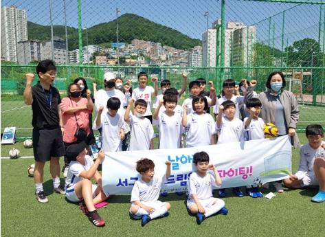 부산 서구(구청장 공한수) “FC 날아라 드림윙스” 사업단은 서구유소년축구단(대표 이창우)과 체육활동 학원 연계 사업을 위한 업무 협약을 맺고, 지난 23일 구덕운동장 풋살경기장에서 발대식을 개최했다.