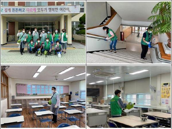 연제구 연산8동(동장 황학진)은 지난 26일 코로나19 확산 방지를 위해 새마을지도자협의회(회장 양재봉), 새마을부녀회(회장 양옥선), 새마을문고회(회장 김유덕) 호원 15명과 함께 등교 개학을 앞둔 연천초등학교의 교실, 복도, 운동장 시설 등에 대한 집중 방역을 실시했다.