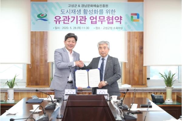 경남 고성군(군수 백두현)은 오늘(5월 28일) ‘경남문화예술진흥원(이하 진흥원)’과 도시재생 활성화를 위한 업무협약을 체결하였다