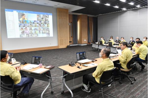 수원시는 이날 확대간부회의를 비대면 영상회의 방식으로 진행했다. 염태영 시장, 조청식 제1부시장, 조무영 제2부시장, 본청 실·국장 등 최소 인원만 시청 중회의실에서 회의에 참석했고, 4개 구청장, 주무과장 등 50여 명은 각자 사무실에서 영상으로 참석했다.