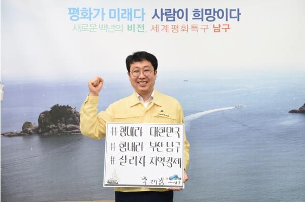 박재범 부산 남구청장이 28일 “코로나19의 극복 희망 캠페인”에 참여했다.