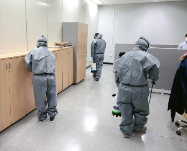 시는 우선 단지에 위치한 건물 3개동 전체를 28일 오후 자체 방역인력을 동원해 시설 곳곳을 소독했다.