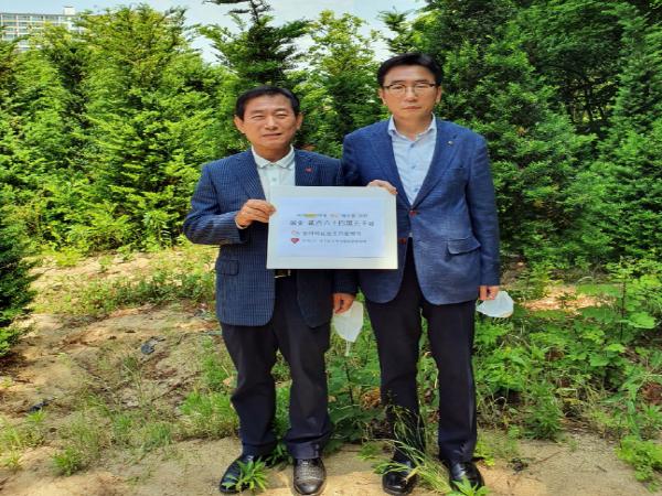 2019년 복지119서구동지역사회보장협의체 민간위원장을 맡은 이후 후원금과 보청기 등 2천만 원이 넘는 금품을 후원했는데, 이번에는 20년을 가꾼 주목을 나눔 밴드(나누면열리는세상)에서 팔아 복지 사각지대 기금으로 후원한 것이다.