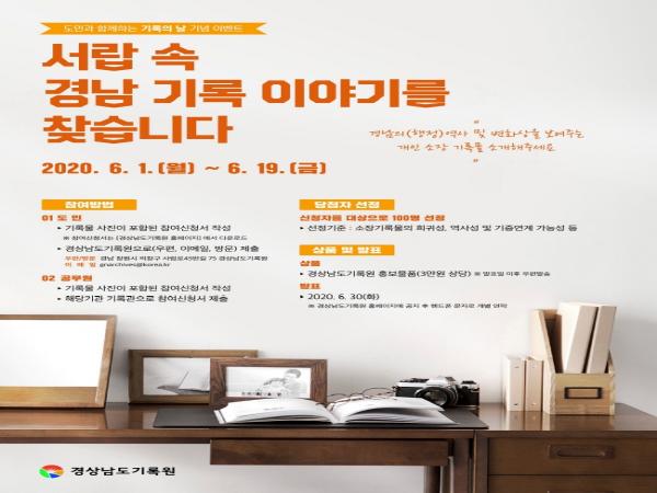 이번 이벤트는 코로나19 상황 등을 감안해 온라인으로 참여 가능한 “서랍 속 경남 기록 이야기를 찾습니다” 캠페인과 “온라인 퀴즈응모 이벤트”로 진행한다.