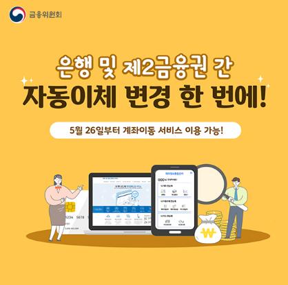2020년 5월 26일부터 은행권 및 제2금융권 상호간 자동이체 계좌변경이 가능해집니다.