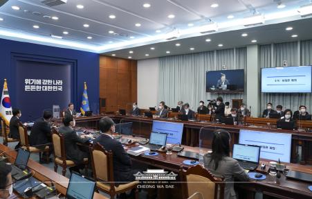 문재인 대통령은 "방역 조치의 거듭된 연장으로 소상공인과 자영업자의 어려움은 더욱 가중되고, 취약계층의 삶은 더욱 힘겨워지고 있다"며 "사회 전체적으로 손실과 고통을 나누는 현실적인 해법을 모색해야 할 것"이라고 주문했다. 또, 정부의 방역 조치로 발생하는 손실을 보상할 수 있는 제도적 방안 마련과 함께, 그때까지 발생하는 피해에 대한 지원대책도 강구해야 한다고 말했다.