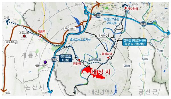 도로 개통에 따라 평촌산단과 서대전IC는 물론 인근의 계룡IC와의 접근성도 동시에 확보됨으로써 물류비용 절감 등 기업유치를 위한 긍정적 요소로 작용할 것으로 판단하고 있다.