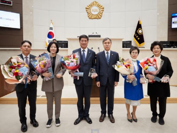 이날 전달식에서는 이건한 의장이 박문석 경기도 시·군의회의장협의회장을 대신해 박만섭, 박남숙, 박원동, 김희영, 이창식 의원에게 시상을 했다.