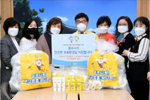 광주시는 1일 관내 어린이집 345개소를 대상으로 코로나19 예방 및 확산 방지를 위해 영유아용 면 마스크 2만8천장과 손 소독제 1만4천개를 전달했다.