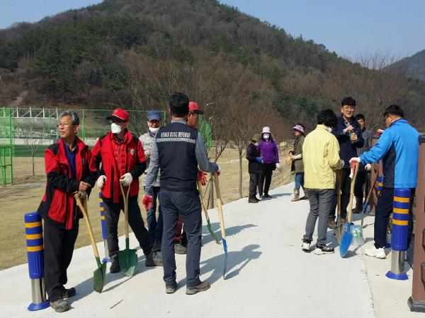 완주군 비봉면 주민자치위원회가 체육공원 주변에 수양홍도화를 식재했다.