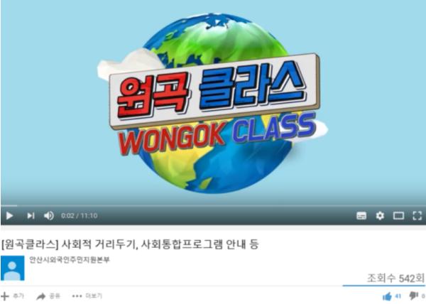 시는 코로나19 사태 장기화로 방문민원상담 및 교육, 문화 프로그램 등이 중단돼 불편을 겪고 있는 외국인주민에게 신속하게 재난상황을 전파하고 한국어 교육 및 사회복지서비스 등 외국인 대상 지원사업의 정보를 제공하고 주민들과 적극적인 소통을 위해 ‘원곡클라스’ 유튜브 방송을 개설했다.