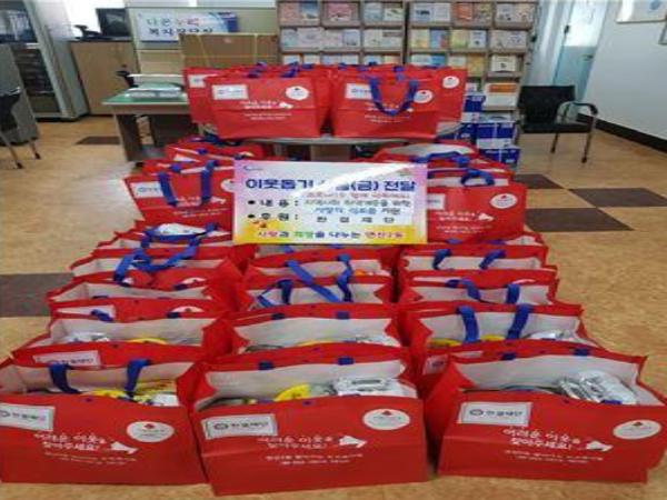 한결재단 측은 “코로나19로 어려움을 겪고 있는 지역주민과 골목상권에 조금이라도 도움이 되고 싶다”며 행정복지센터 인근 소형마트에서 구매한 식료품으로 성품을 마련했다.